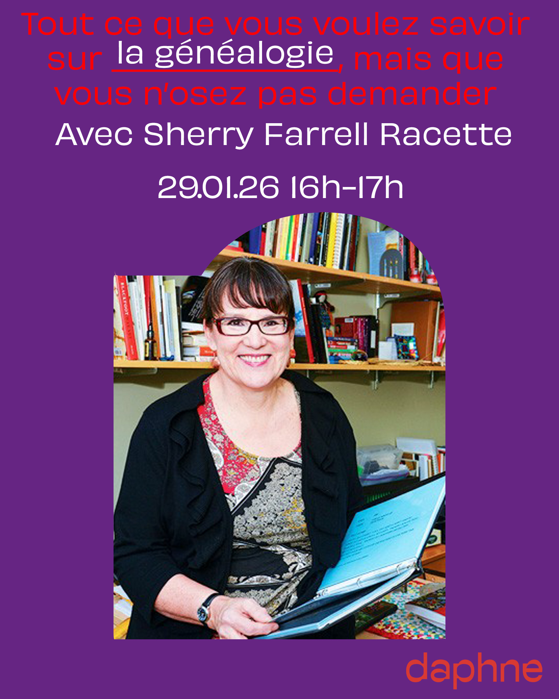 Dans cette conférence informelle, Sherry Farrell Racette explorera l'importance vitale de connaître l'histoire et les récits familiaux, ainsi que le rôle de la recherche généalogique à une époque où les « fauxtochtones » suscitent de plus en plus d'inquiétudes. Elle examine la généalogie autochtone et métisse comme un outil puissant pour la décolonisation, la récupération de l'identité et l'exercice des droits, tout en reconnaissant les défis profonds posés par les archives coloniales. Racette discutera de l'importance des connaissances communautaires, orales et fondées sur la parenté, partagera la manière dont elle utilise la généalogie dans ses recherches en histoire de l'art et se passionnera avec enthousiasme pour les sources historiques. Au fil de la discussion, elle réfléchira également, sans citer de noms, à la manière dont les fraudeurs manipulent l'ignorance et à l'importance d'une recherche minutieuse et éthique.