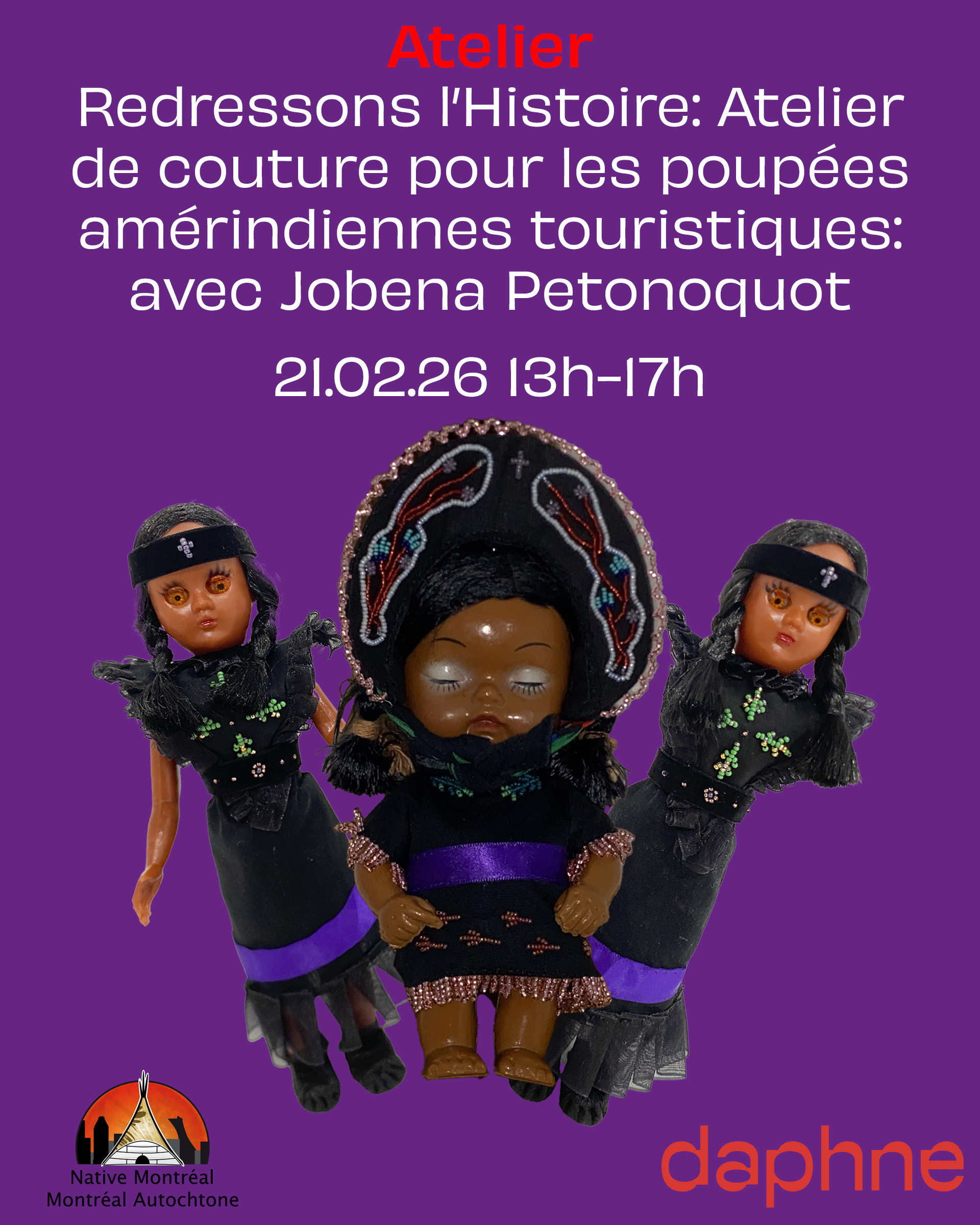 Redressons l’Histoire: Atelier de couture pour les poupées amérindiennes touristiques: daphne x Native Montreal